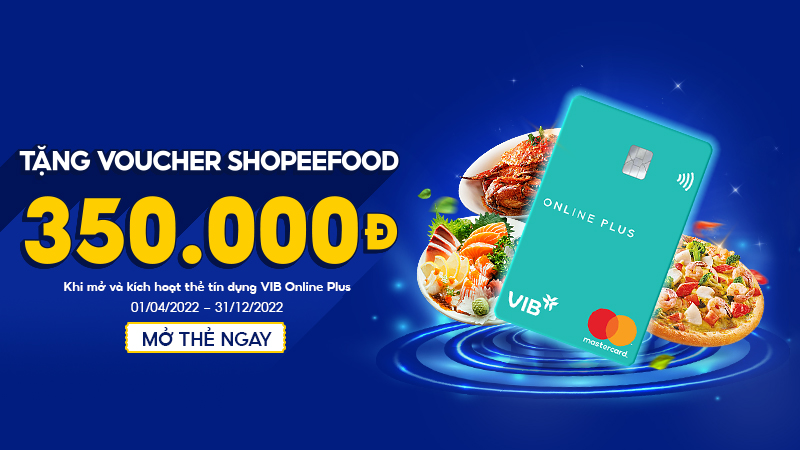Ngoài ra, với các bạn đang có nhu cầu mở thẻ ngân hàng thì VIB và ShopeeFood còn mang đến quà tặng là voucher trị giá 350K với người dùng mới khi mở thẻ VIB Online Plus và kích hoạt thành công nữa đó.