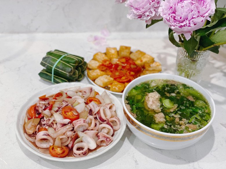 Ngoài những bữa cơm gia đình, thỉnh thoảng bà mẹ 8X cũng "đổi gió" cho gia đình qua những món bún như bún đậu mắm tôm, bún bò Huế... cùng nhiều đồ ăn khác. Nhờ thế, thực đơn cũng trở nên phong phú, đa dạng, giúp chồng con chị thích thú hơn khi tới giờ ăn.