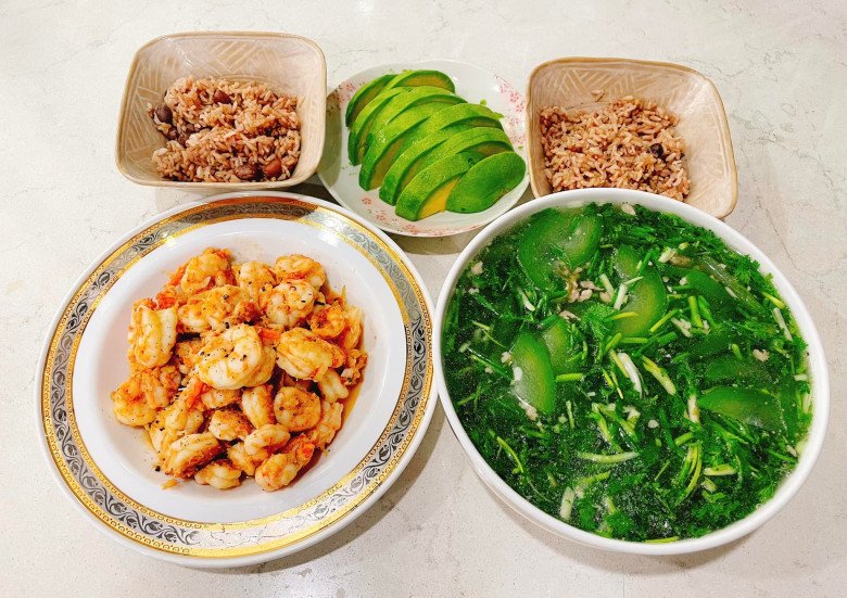 Chị kể, để làm được điều này, phần lớn là do sau khi mua thực phẩm xong, chị sẽ sơ chế, chia thành từng bữa rồi đem trữ đông, khi nào cần sẽ lấy ra nấu giúp cho thời gian vào bếp nhanh hơn, tiết kiệm được nhiều thì giờ. Được biết, do các con chị đang độ tuổi phát triển, cần bổ sung dưỡng chất vì thế các bữa cơm của chị luôn giàu dinh dưỡng. Chi phí cho một bữa ăn của gia đình sẽ có giá trung bình khoảng 200 nghìn đồng.